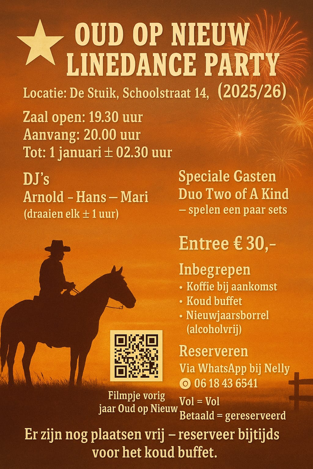 « Alle Evenementen Dit evenement is voorbij. Oud op Nieuw Linedance partyTwo of a kind LIVE(DJ Mari & Arnold & Hans) 31 december 2025 @ 20:00 - 1 januari 2026 @ 03:00 €30,00 « BVCD vrij dansen (DJ Glenn) Rolida’s linedance (Toos)GEANNULEERD ivm sneeuw » Toevoegen aan kalender Google Calendar iCalendar Outlook 365 Outlook Live Gegevens Begin: 31 december 2025 @ 20:00 Einde: 1 januari @ 03:00 Kosten: €30,00 Organisator DJ Mari Telefoon Aanmelden bij Nelly: 06-18436541 Locatie De Stuik Schoolstraat 14 Vorstenbosch, Netherlands + Google Maps Geef een reactieJe e-mailadres wordt niet gepubliceerd. Vereiste velden zijn gemarkeerd met *Reactie * Naam * E-mail * Site Δ Deze site gebruikt Akismet om spam te verminderen. Bekijk hoe je reactie gegevens worden verwerkt.