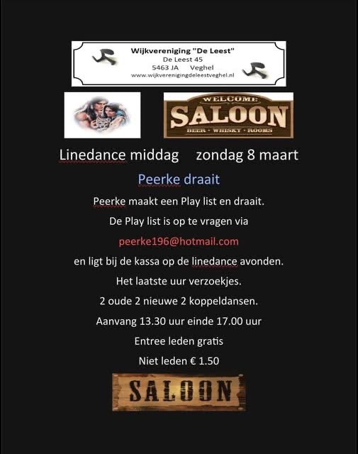 « Alle Evenementen Linedance middag (DJ Peerke) 8 maart @ 13:30 - 17:00 €1,50 « Rolida’s linedance (Toos) It’s line dance time (SVD) » Toevoegen aan kalender Google Calendar iCalendar Outlook 365 Outlook Live Gegevens Datum: 8 maart Tijd: 13:30 - 17:00 Kosten: €1,50 Organisator Wijkvereniging “De Leest” Bekijk de site van Organisator Locatie De Lapvoet De Leest 45 Veghel, Netherlands + Google Maps Geef een reactieJe e-mailadres wordt niet gepubliceerd. Vereiste velden zijn gemarkeerd met *Reactie * Naam * E-mail * Site Δ Deze site gebruikt Akismet om spam te verminderen. Bekijk hoe je reactie gegevens worden verwerkt.
